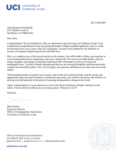 Studies of Computer Science and Engineering at the Californian University. I'm in the transfer process (TAG) accepted by 4 top below mentioned universities